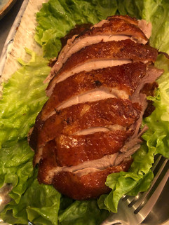 Seguimos con el pato lacado estilo Pekín, con sus crepes, pepino y apio y finalizamos con los noodles salteados con pato, todo ello muy rico y bien presentado.